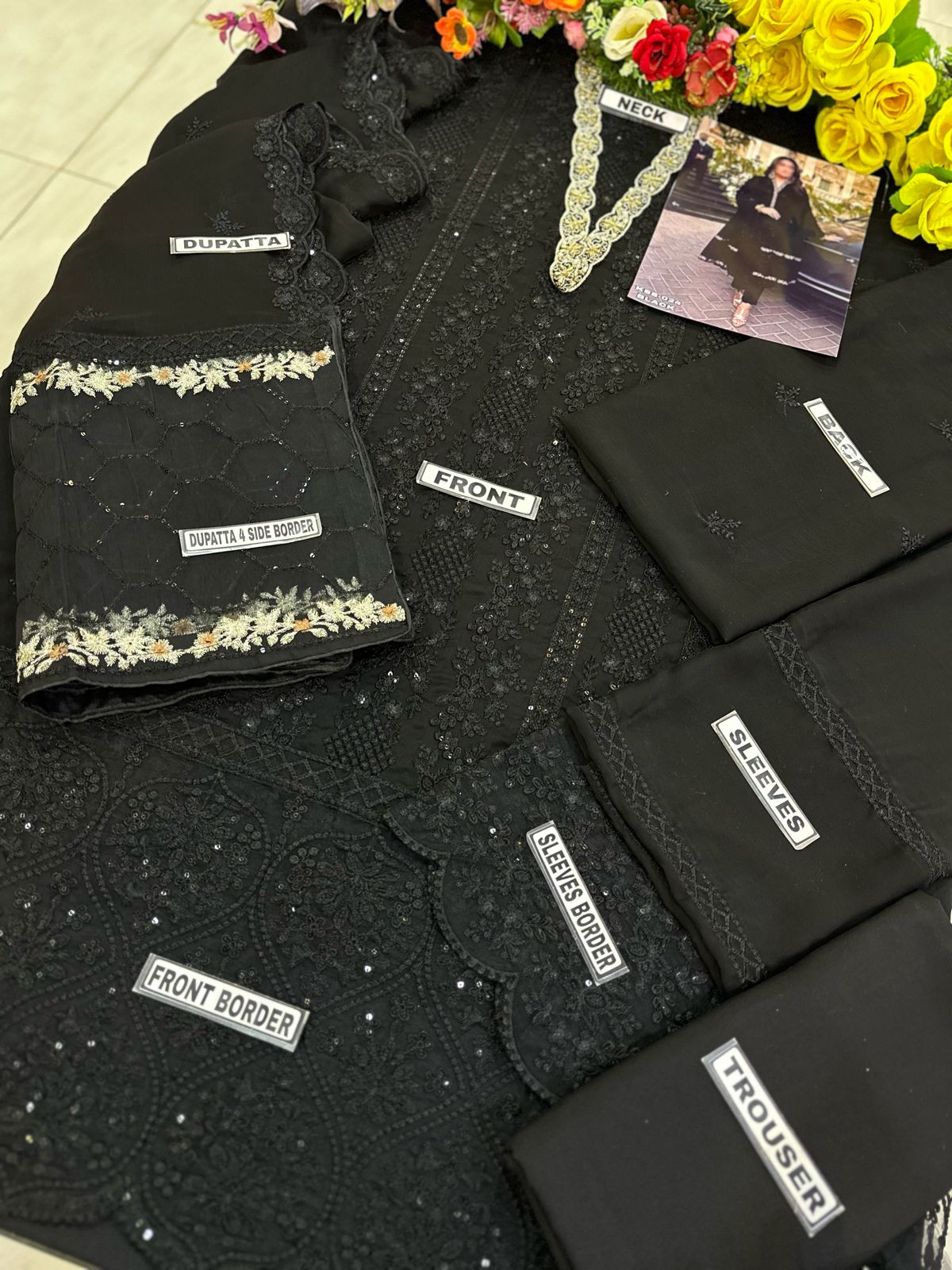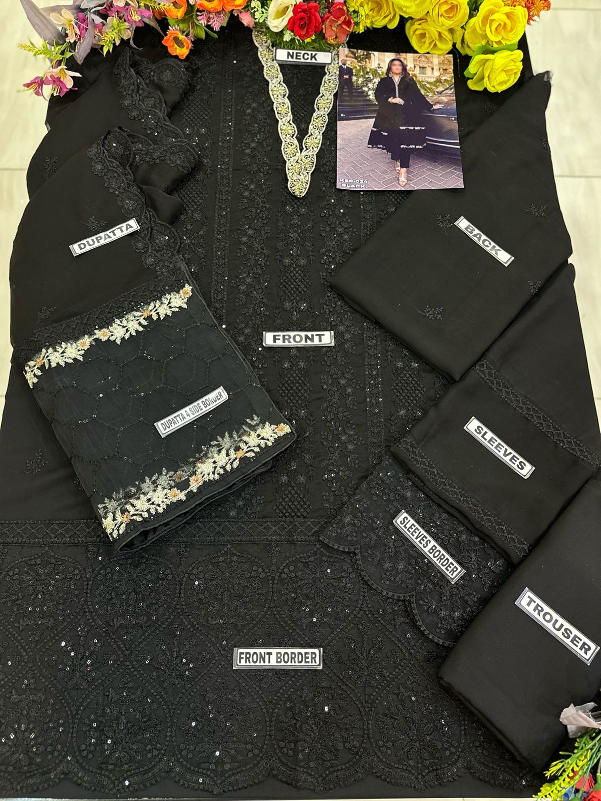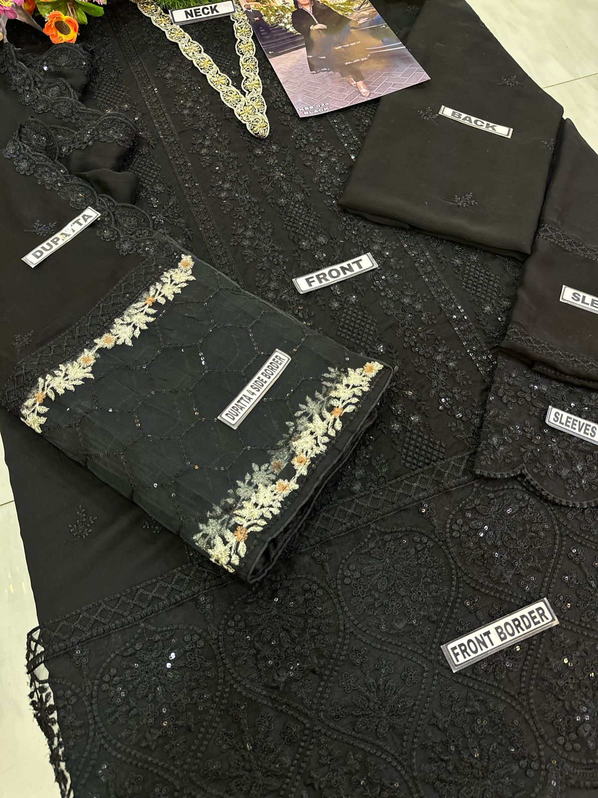 Azure Luxury Chiffon Partywear Dress Black | SC-024
