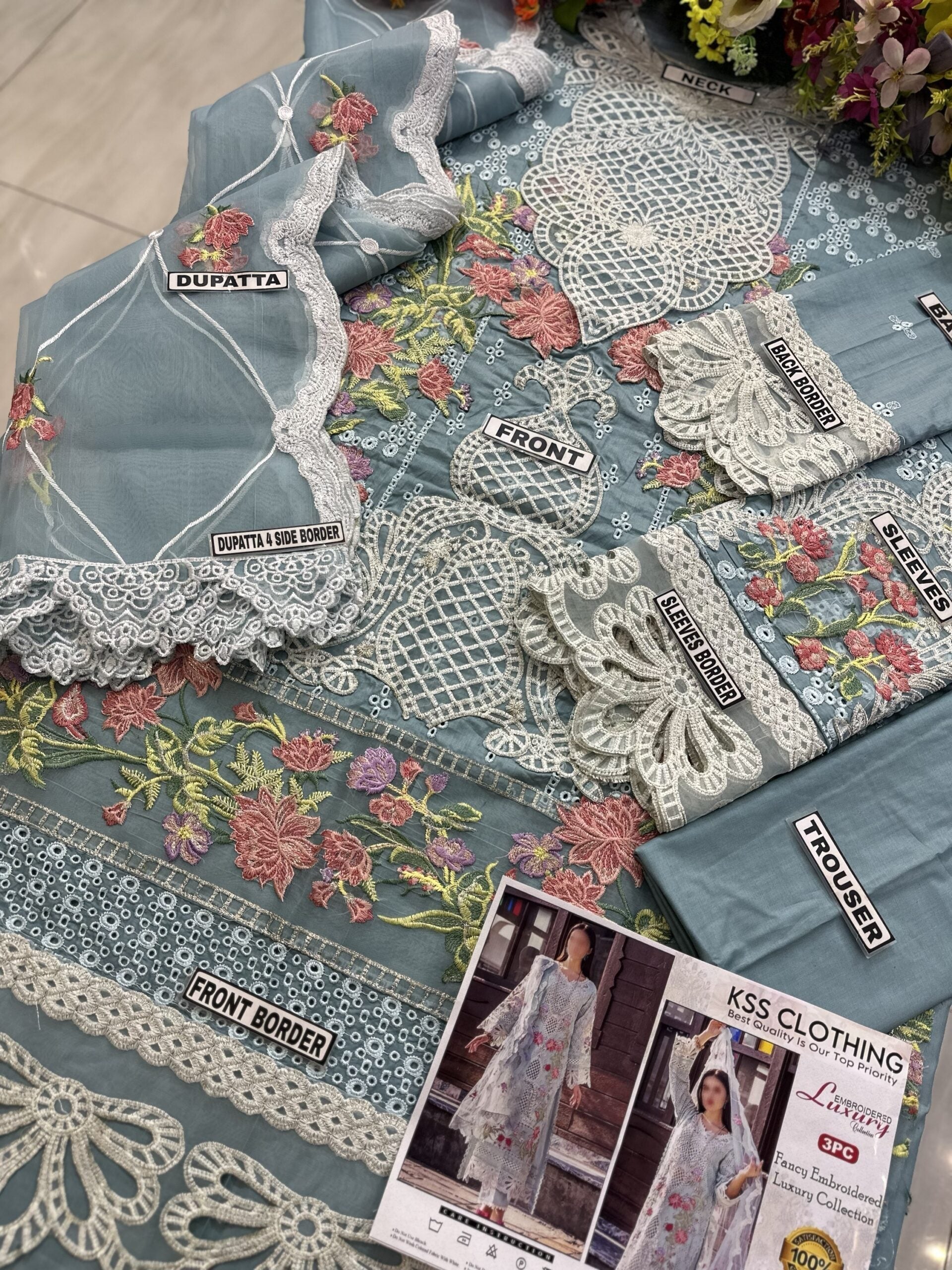 • Dupatta: Organza (Fully Heavy Embroidered, Ready to Wear)