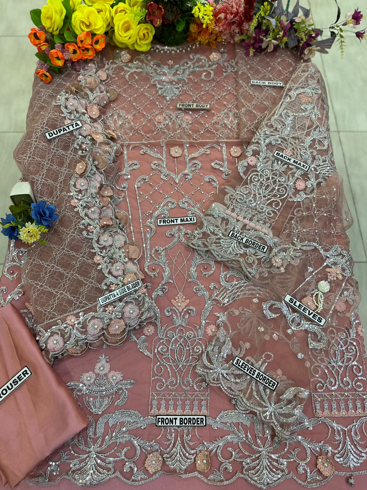 ●SLEEVES BORDER EMBROIDERED *with stones handwork*