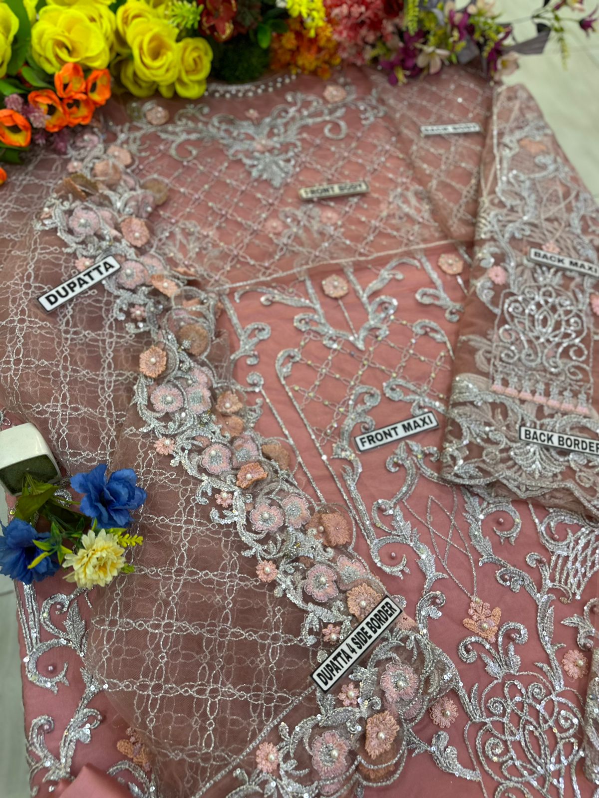 ●DUPATTA EMBROIDERED *with 4 side embroidered border & with stones handwork*