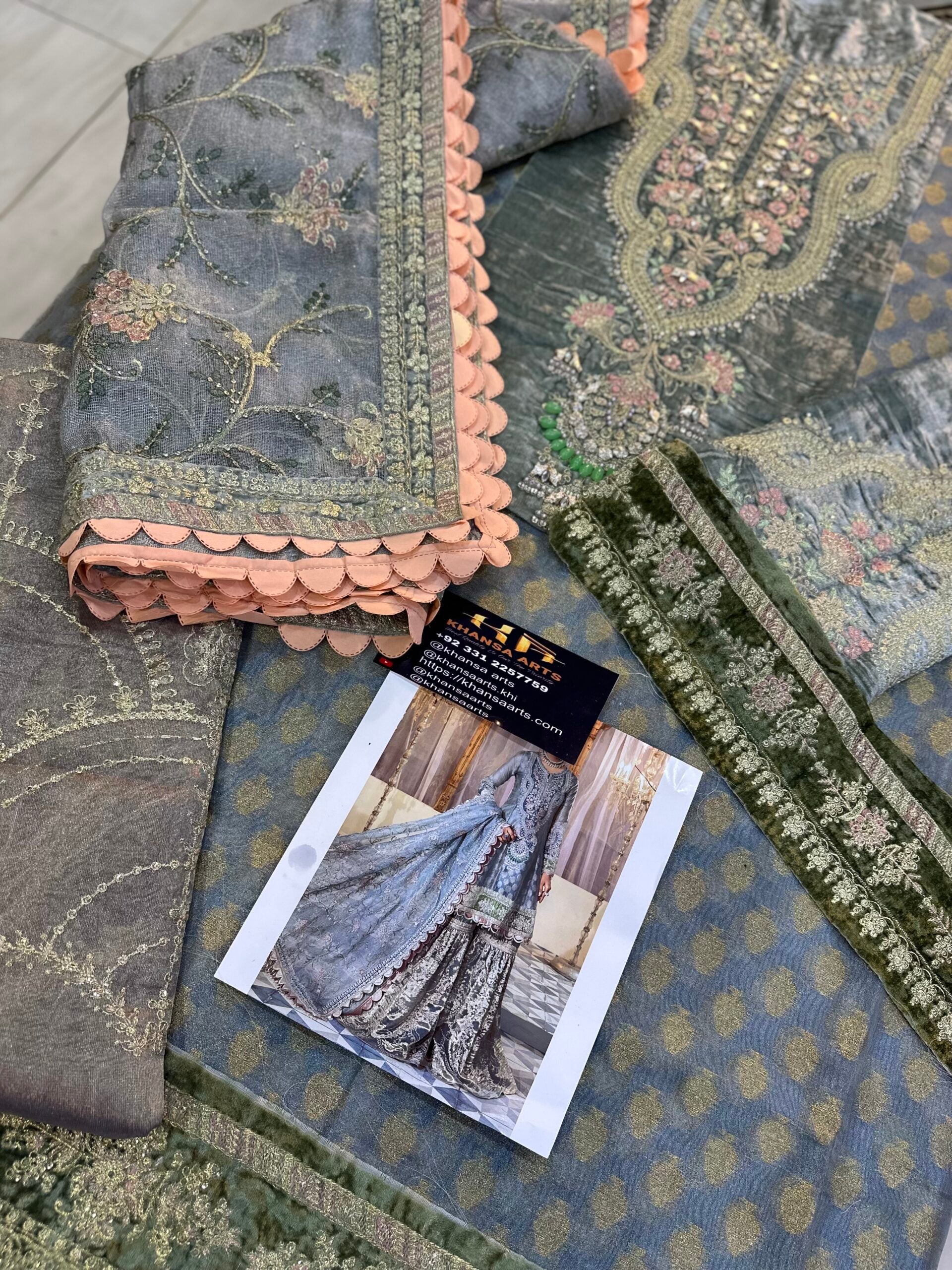 Embroidered & Hand Embellished Neckline Velvet Patch