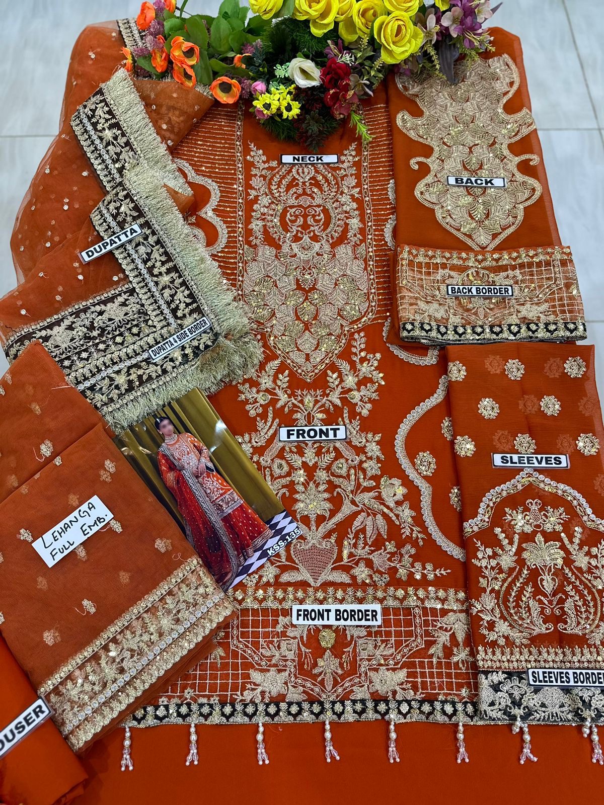 • Dupatta: Net (Heavy Embroidered with Four-Side Border)