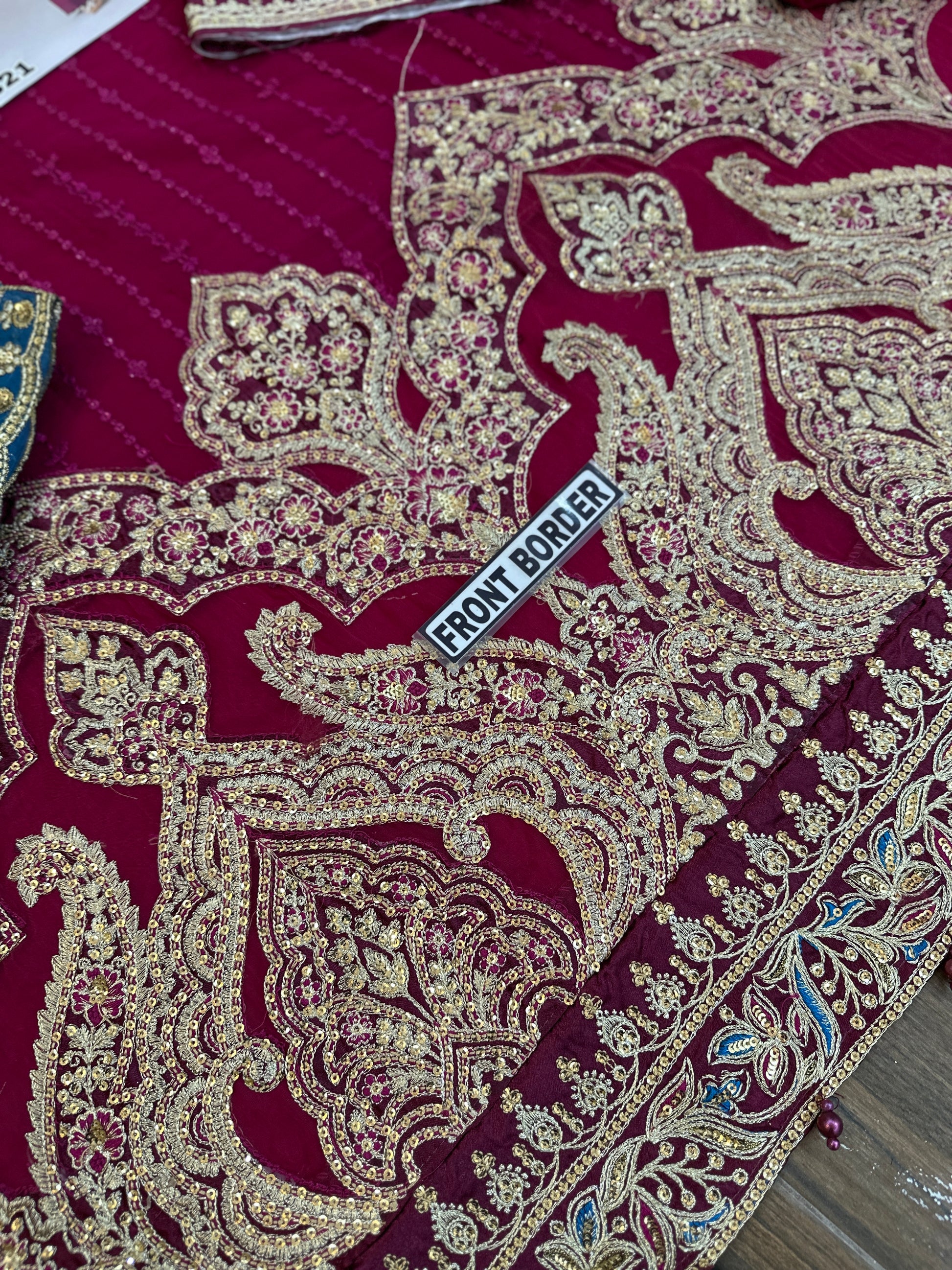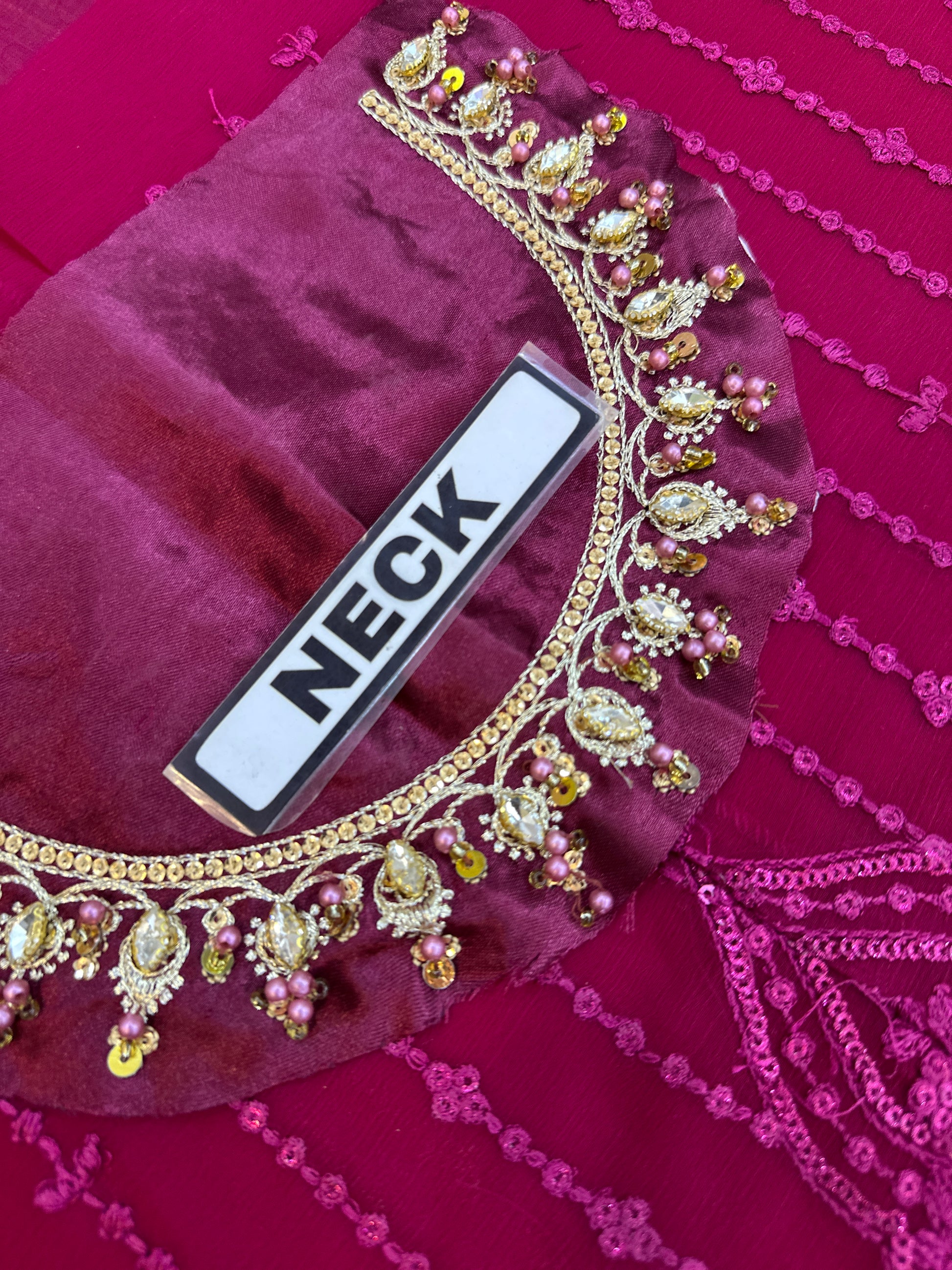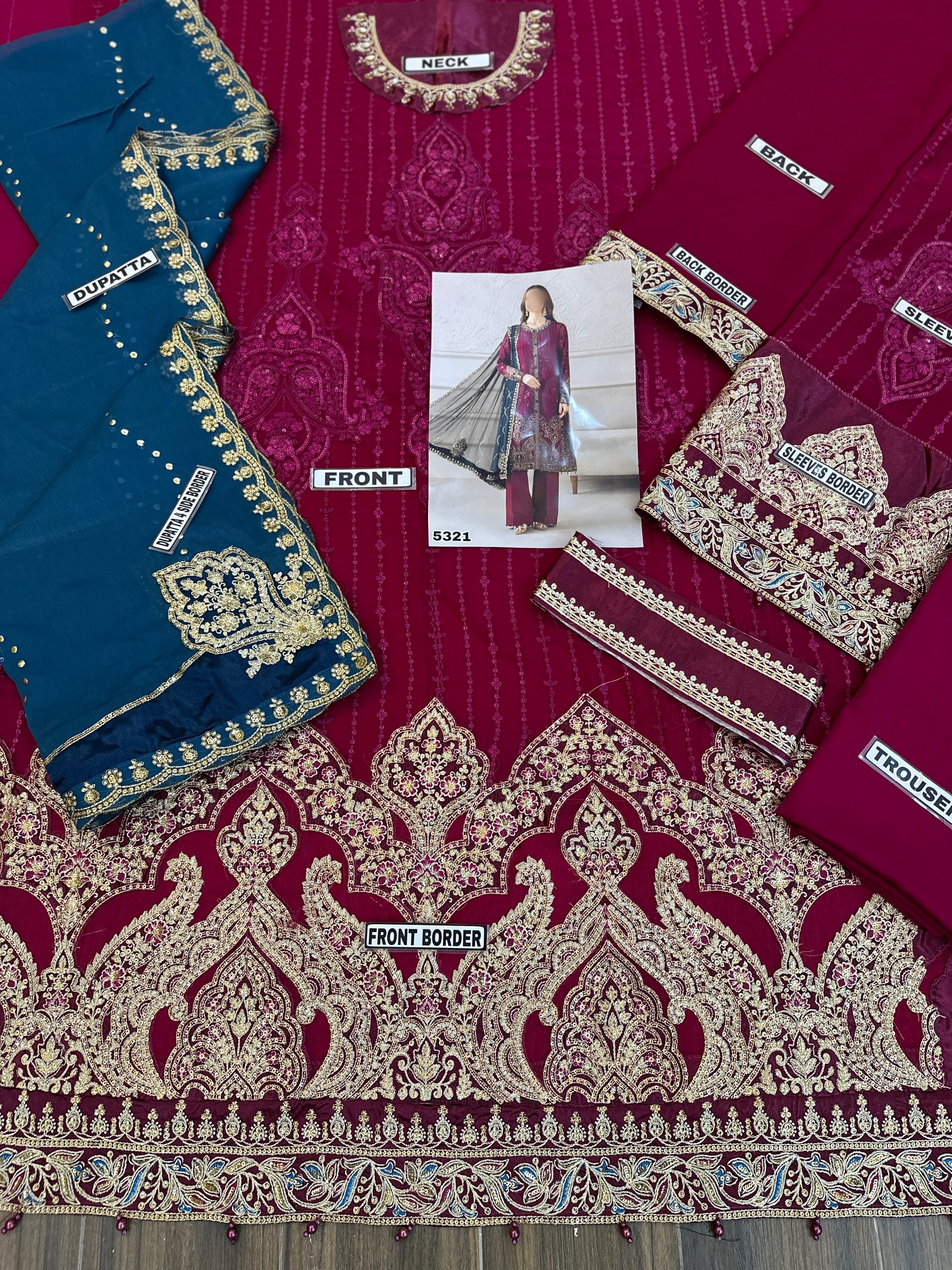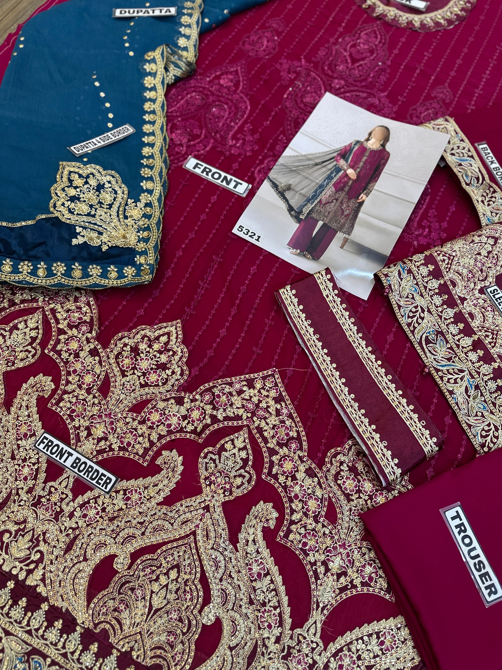 • Dupatta: Embroidered chiffon finished with 4-side borders & chic hanging tassels