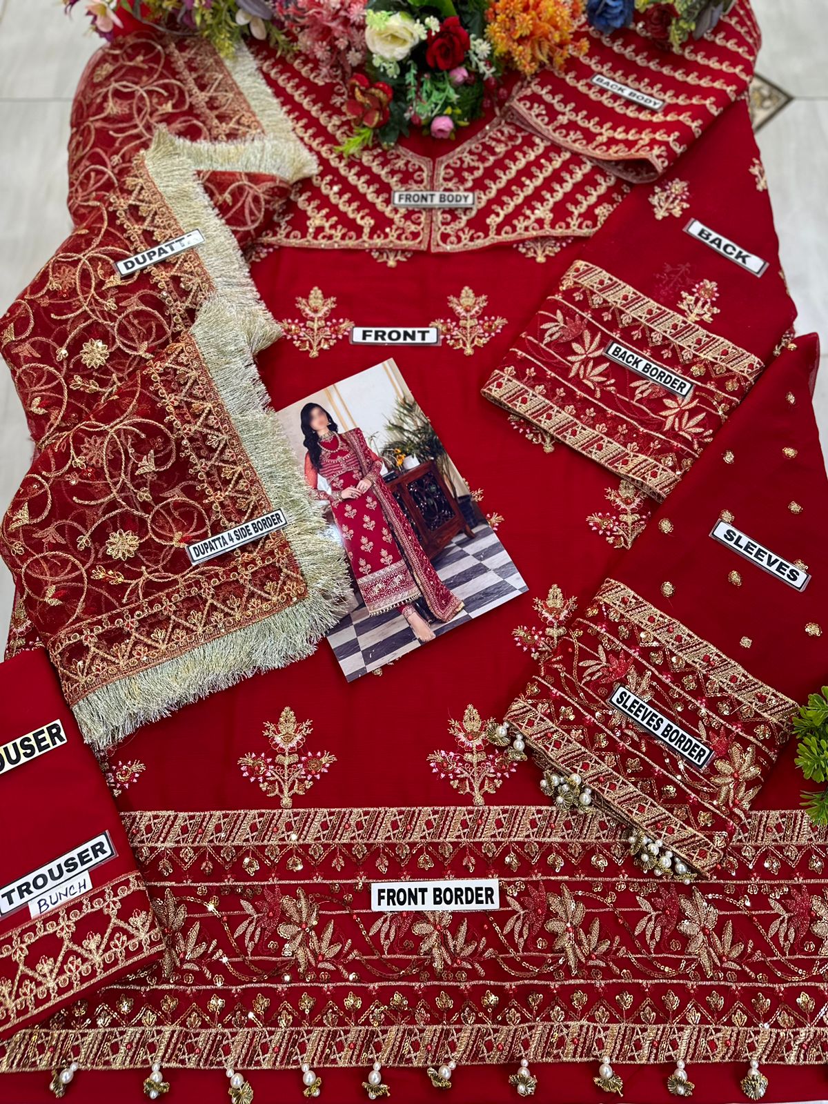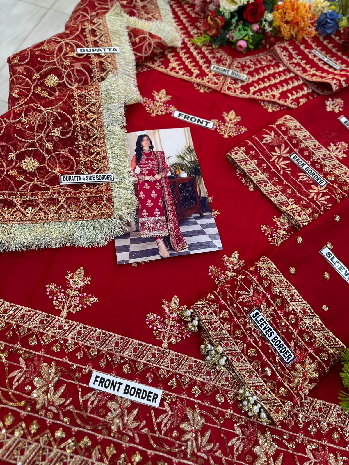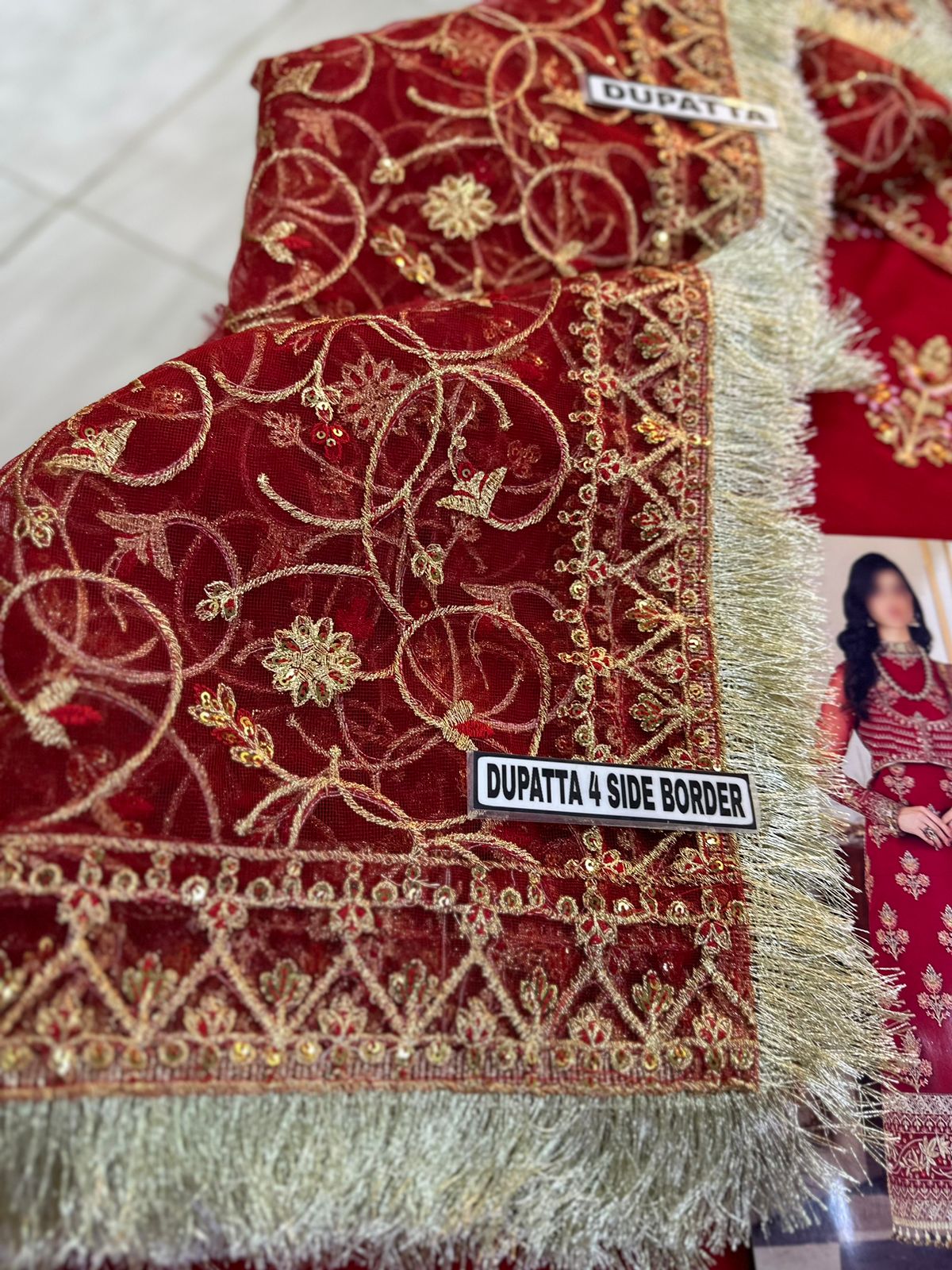 • Dupatta: Delicate net with four-side embroidered border